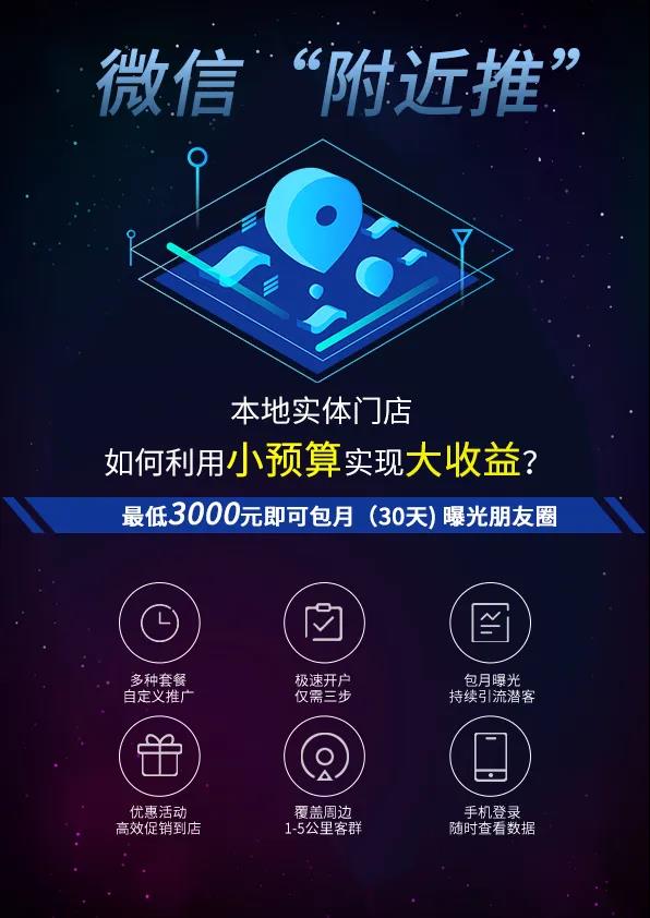 以上是關(guān)于附近推廣告優(yōu)勢以及行業(yè)投放的全部內(nèi)容。附近推是微信給線下小商戶的在店鋪周邊五公里范圍內(nèi)*投放朋友圈廣告,能覆蓋周圍3萬以上的人群。總的來說附近推對于線下小商戶進行營銷是非常優(yōu)惠和實在的,所以必須投放。