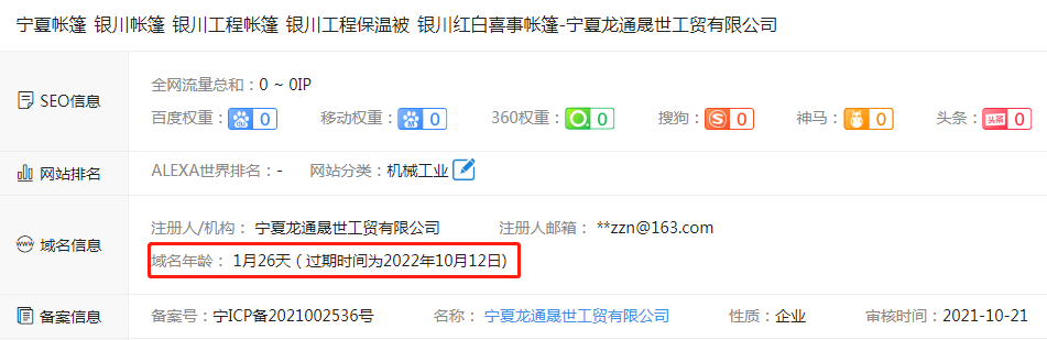 龍通晟世網(wǎng)站上線20天左右,就成功被搜索引擎收錄,而且關(guān)鍵詞:銀川工程帳篷、銀川工程保溫被、銀川紅白喜事帳篷等,均在百度首頁展示。